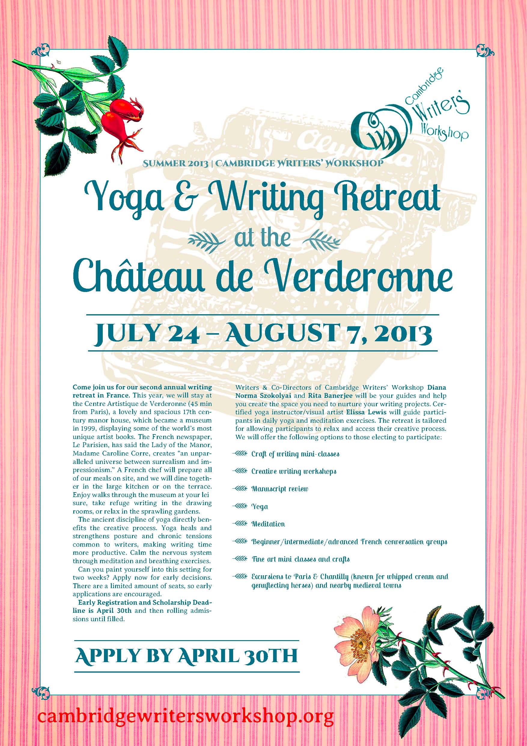 CWW Summer 2013 Yoga & Writing Retreat at the Château de Verderonne