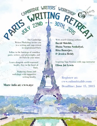 Paris2015PosterJune15Deadline Published June 1, 2015 at 2550 × 3300 in Cambridge Writers’ Workshop Summer Writing Retreat in Paris (July 22-30, 2015) ← Previous Next → Summer in Paris Writing Retreat Like Loading...