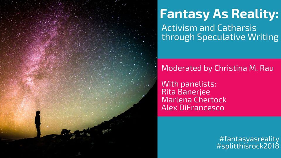 Our readers Rita Banerjee, Marlena Chertock, and Christina M. Rau will also be hosting a panel during Split This Rock, entitled “Fantasy As Reality: Activism & Catharsis in Speculative Writing,” which will be held at National Housing Center Room B (1201 15th Street NW, Washington, DC 20005) on Saturday, April 21 from 9-10:30 am. The Fantasy As Reality is described below: