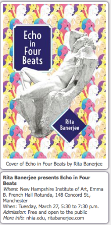 The New Hampshire Institute of Art in Manchester welcomes a special guest writer, Rita Banerjee, on Tuesday, March 27, for a reading, signing and discussion of her debut collection of poetry, Echo in Four Beats, released earlier this month.